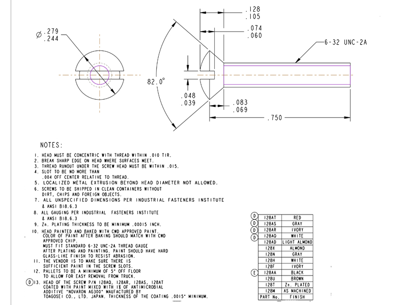We supply a large number of the slotted switch plate screw, 6-32 thread was incorporated at 19.5mm length underneath the head, white zinc plating and the screw head is white coating (for screw head coating, we can offer black, khaki and red color). There may be scratches on the screw head surface during transportation because white coating, therefore, we usually recommend customers to pack individually or several in PE bags. We have a large stock of this screw because it is supplied to many customers.