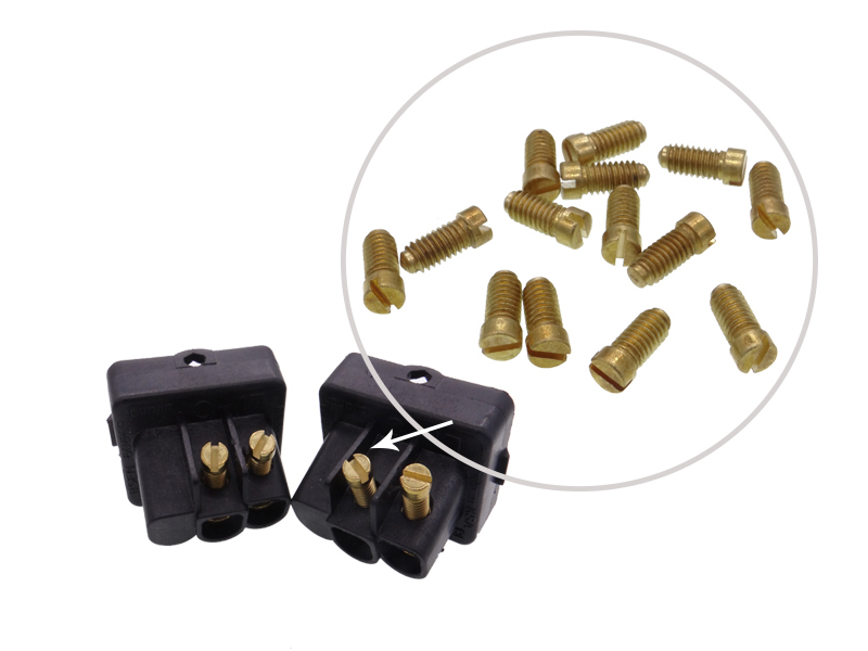 This is a custom brass terminal screw we supply to our electrical construction customer with an annual quantity of 30 million pieces. The thread diameter are 3.5mm and 4.5mm, length in 9.5mm and 11.5mm, using brass h63 material. Terminal screws are used extensively in building wiring for the distribution of electricity – connecting electrical outlets, luminaires and switches to the mains, and for directly connecting major appliances. The production capacity of one machine is 50,000pcs to 80,000pcs per day.