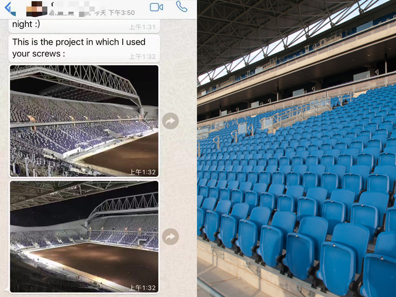 The customer come from Israel won a project for stadium seating production and chose our screw as their fastener of choice. With its reliable performance and high-quality construction.