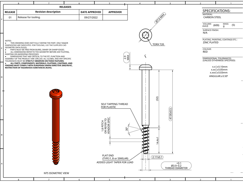This is a custom metric screw torx driver which use in the microphone PCB, we supply for a Australia operated audio company. The thread diameter is 2.1mm, the length are 17mm, 29.5mm and 47mm. The screw manufactured through Two-die Four-punch cold heading machine, using low carbon steel (case hardened) material and zinc plating, according to customer requirements the plating are red, yellow, white and green color. For quantity 30000pcs -50000pcs the lead time 8-10 days.